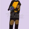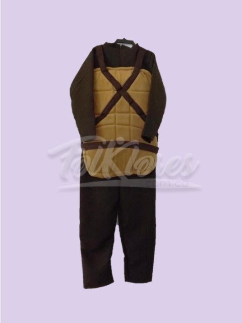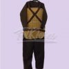 Disfraz tipo enterizo con cremallera en la espalda, chaleco y máscara en fomy. Fabricado en tela lino flex o flexite es un textil grueso, pesado y con caída.