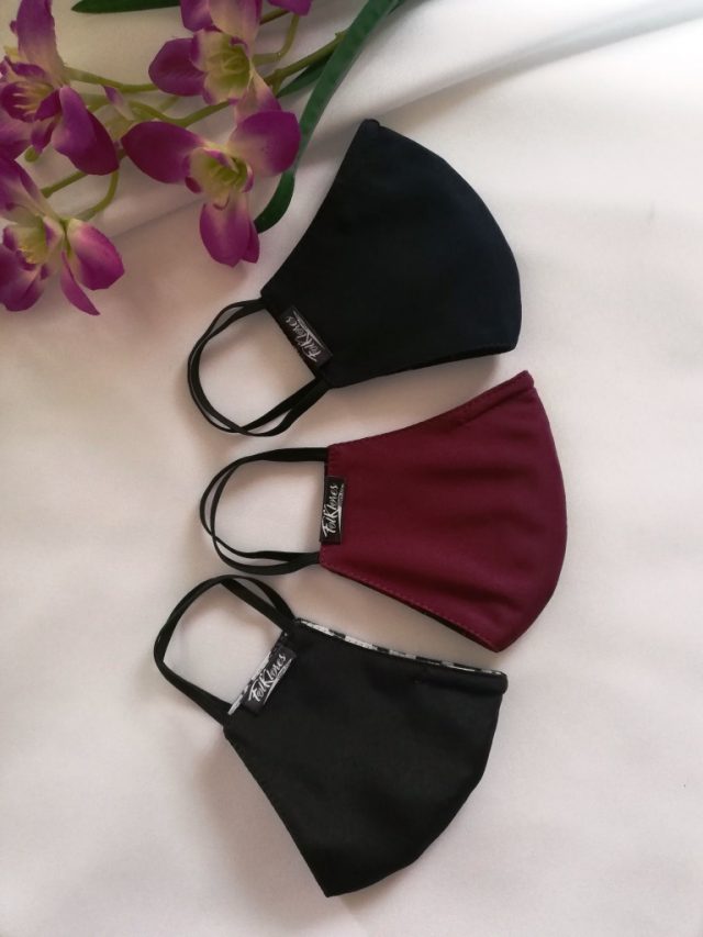 Compuesto de 3 capas de tela con bandas elásticas para ajustar en las orejas. Pespunte en contorno y costuras internas calibre 120. Cada tapabocas cuenta con un ajuste de nariz suave, liviano y moldeable para mayor comodidad.